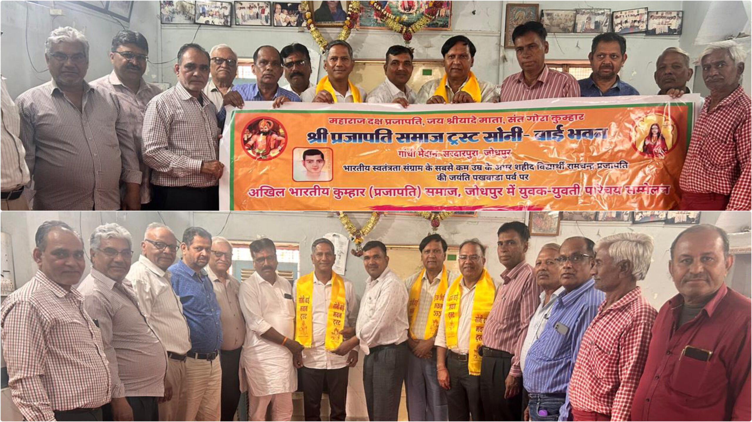 थार न्यूज़ लाइव शंकरलाल रेवाड़िया/ जोधपुर/ श्री प्रजापति समाज सोनी बाई भवन, सरदारपुरा, जोधपुर के तत्वावधान मेंअखिल भारतीय कुम्हार यानी प्रजापति समाज द्वारा जोधपुर में एक भव्य युवक-युवती परिचय सम्मेलन ऐतिहासिक आयोजन होने जा रहा है।यह भव्य आयोजन आगामी पाँच अप्रैल, दो हज़ार छब्बीस, दिन रविवार कोश्री विश्वकर्मा पब्लिक स्कूल, जांगिड़ भवन, शास्त्री नगर, दल्ले खां चौराहा के पास, पाल रोड़, जोधपुर में पूरी भव्यता के साथ आयोजित किया जाएगा।इस महा-आयोजन को सफल बनाने और इसे मूर्त रूप देने के लिए.आज बाईस फ़रवरी, दो हज़ार छब्बीस, दिन रविवार को सोनीबाई ट्रस्ट, सरदारपुरा में एक अहम आम बैठक रखी गई।संस्थान के अध्यक्ष, प्रजापति श्रवण कुमार ऐणिया ने जानकारी देते हुए बताया कि आज की इस बैठक में आगामी कार्यक्रम की भव्य तैयारियों की पूरी रूपरेखा तैयार की गई साथ ही, युवक-युवती परिचय सम्मेलन के लिए भरे गए फॉर्म्स का विधिवत संग्रहण किया गया इस बैठक का एक और प्रमुख आकर्षण रहा और बताया कि हमारे समाज के गौरव, आमंत्रित डॉक्टर अतिथियों का सम्मान! संस्थान द्वारा इन अतिथियों का दुपट्टा ओढ़ाकर और पुष्प मालाएं पहनाकर भव्य स्वागत-सत्कार किया गया। इनमें मुख्य रूप से डॉक्टर परमेश्वर लाल पारमुवाल, डॉक्टर दौलतराम प्रजापति ऐणिया, और डॉक्टर कमल कान्त शामिल रहे। संस्थान के पदाधिकारियों और सदस्यों ने उनका आत्मीय स्वागत किया और इस कार्यक्रम को एक ऐतिहासिक सफलता दिलाने का आह्वान किया।समाज के इस नेक कार्य में अपनी निःस्वार्थ सेवा-भावना और समर्पण दिखाने के लिए आज की इस बैठक में कई गणमान्य सदस्य उपस्थित रहे। जिनमें राहुल कारगवाल, प्रजापति महेन्द्र मावर, रामप्रसाद दुरबलिया, फतेहराज घोड़ेला, मुरलीराम मालवीया, भंवरलाल हाटवा, कन्हैयालाल प्रजापत, मांगीलाल भोभरिया, रामस्वरूप निम्बिवाल, गणपत लाल सारडीवाल, सी.ए. भंवरलाल मालवीय, धनराज टाक, और हीरालाल ब्रांधणा ने उत्साहपूर्वक भाग लिया और सभी ने एक स्वर में, एकजुट होकर, इस कार्यक्रम को शानदार और पूर्ण रूप से सफल बनाने का आश्वासन दिया